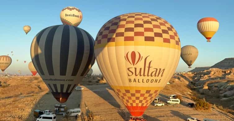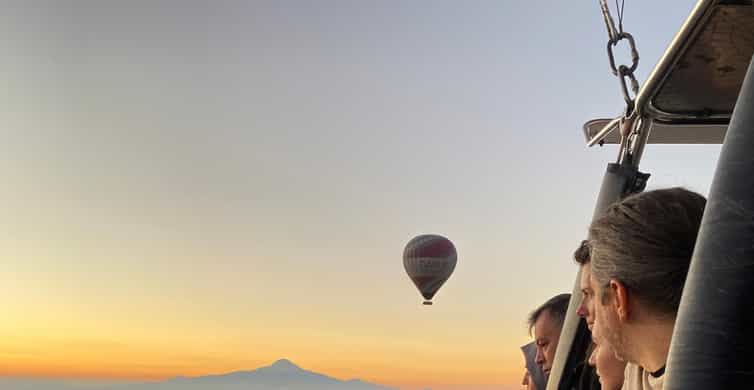 Entdecke die mondähnliche Landschaft Kappadokiens aus einer neuen Perspektive, während du den Sonnenaufgang von einem Heißluftballon aus beobachtest.