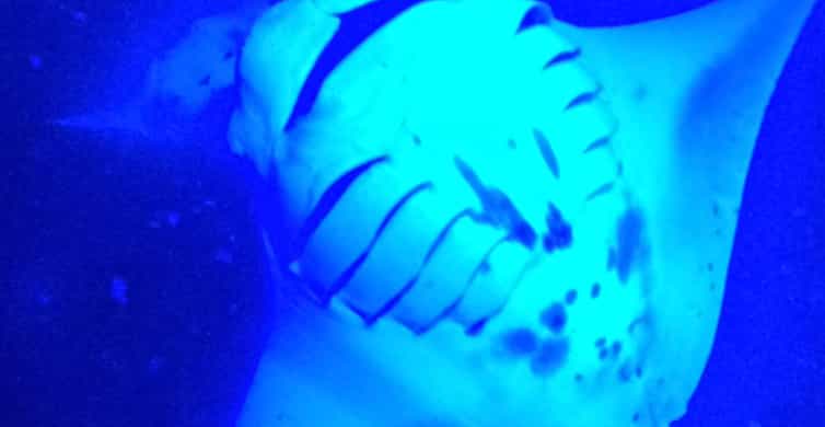 Peganglah cincin renang flotasi dengan lampu air biru bercahaya tinggi yang menarik plankton tempat manta mencari makan. Segera setelah itu, ikan pari akan meluncur di dalam air hampir sepanjang lengan sambil membuka mulutnya yang besar untuk berpesta.